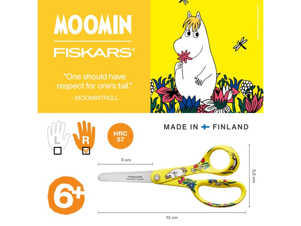 Dětské nůžky s motivem slečny Ferky z příběhů z kouzelného údolí od slavné finské autorky Tove Jansson. Nůžky z finské oceli jsou praktické, mají skvělou ergonomii a vynikají pověstnou kvalitou, kterou jsou nůžky značky Fiskars známé už od roku 1967.