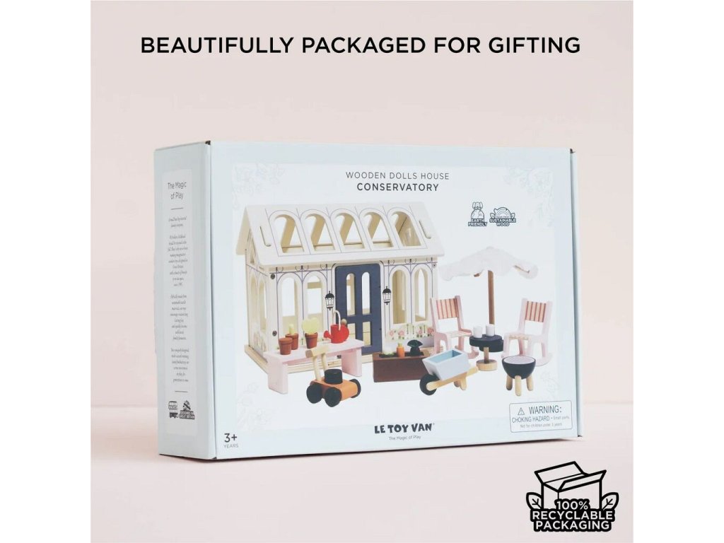 Proměňte dětský pokoj v kouzelnou mini zahradu plnou fantazie. Dřevěný zahradní domeček pro panenky je ideální k jakémukoliv domečku pro panenky. Díky odnímatelné střeše má dítě snadný přístup k hraní a aranžování interiéru. Domeček je zhotoven z FSC® certifikovaného dřeva, malován netoxickými vodovými barvami a splňuje přísné bezpečnostní normy pro hračky.