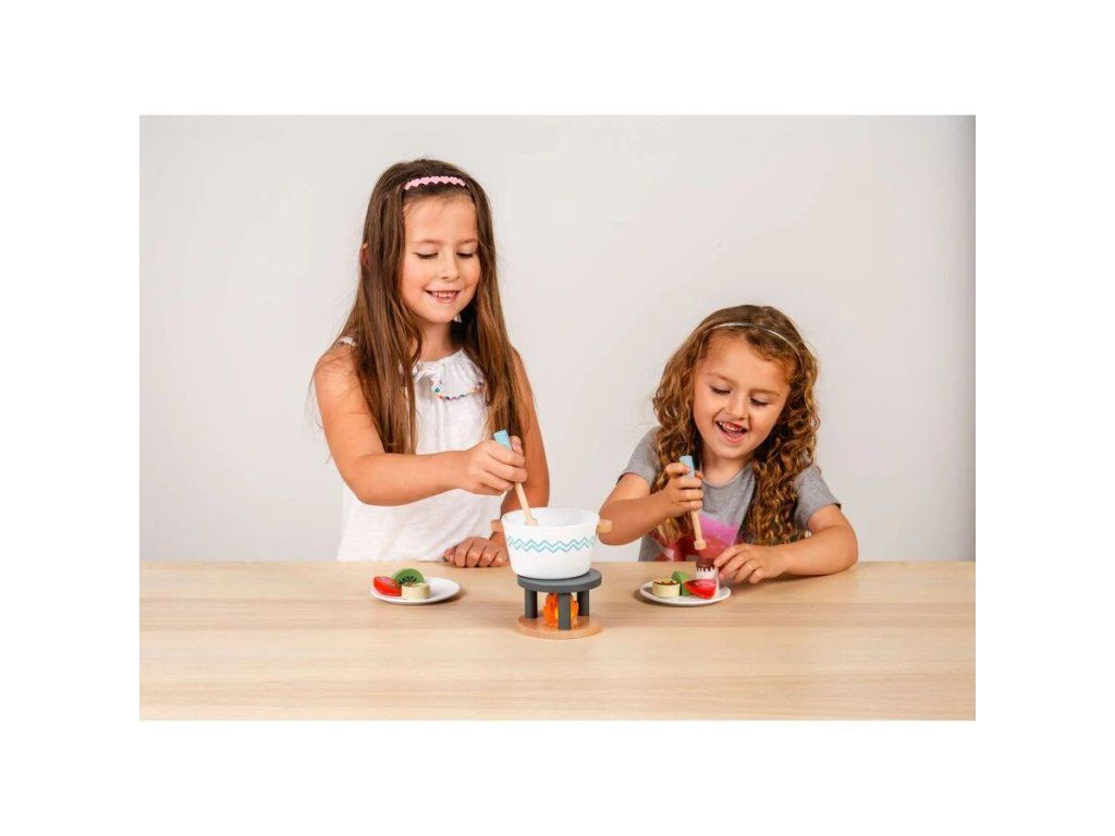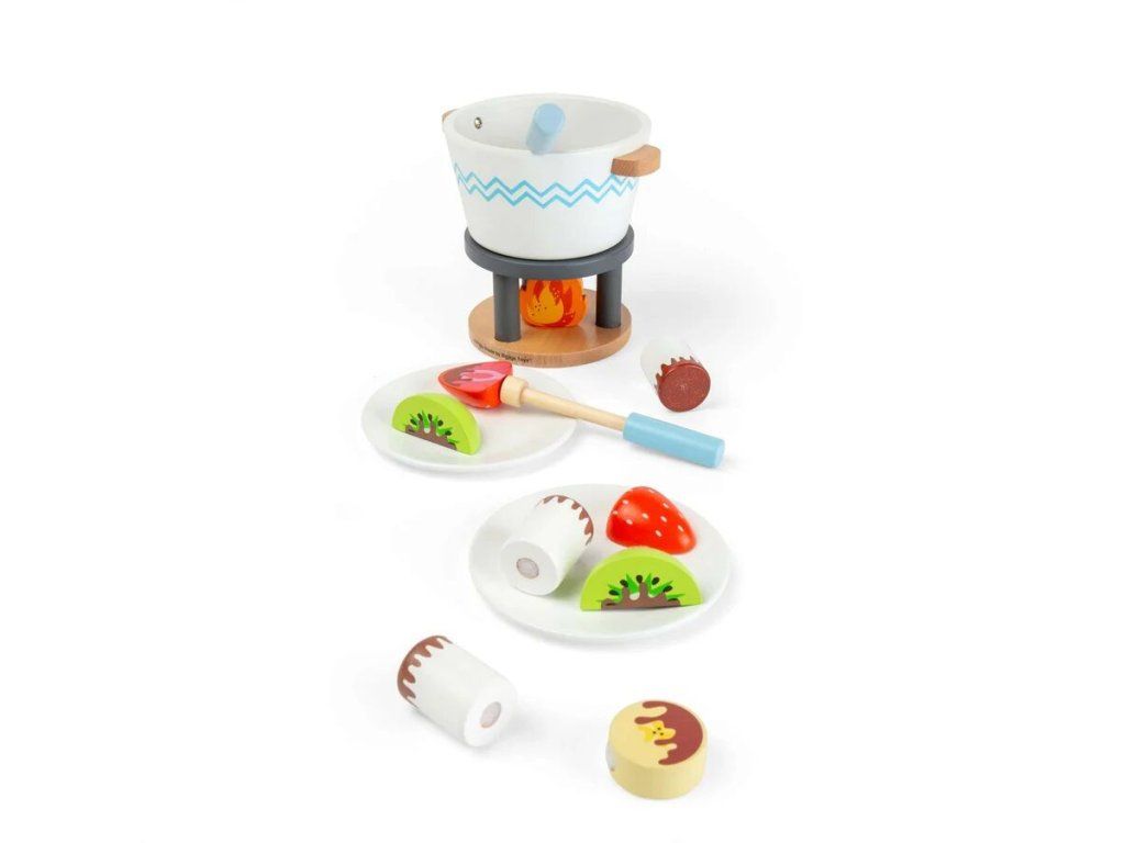 Dřevěná sada pro přípravu a servírování horké čokolády přináší dětem zábavnou hru na hostitele i malé baristy.