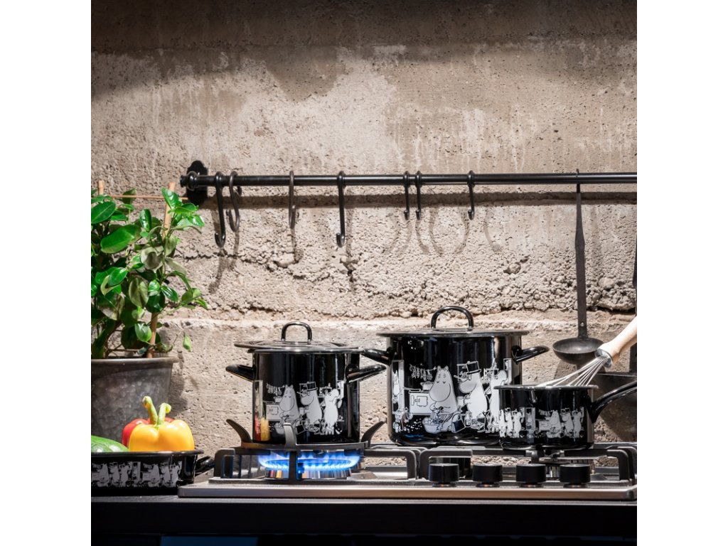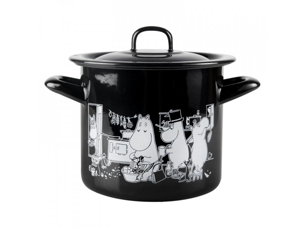 Smaltovaný hrnec s muminky, ze švédských pohádkových příběhů slavné finské autorky Tove Jansson. Hrnec lze používat na všech typech varných desek včetně indukční desky.