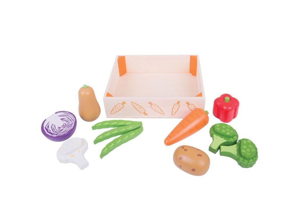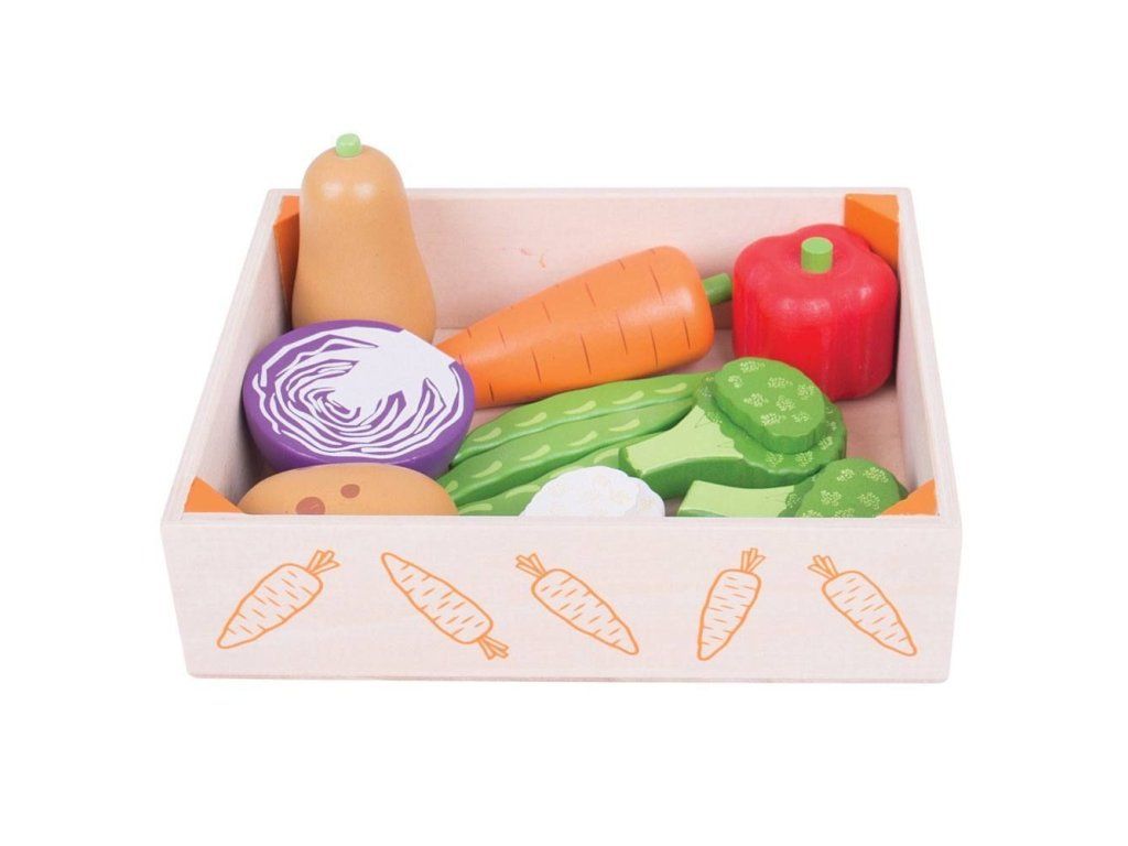 Tato dřevěná přepravka s čerstvou zeleninou z trhu, obsahuje výběr zeleniny, jako je mrkev, brokolice, paprika, cibule a další. Skvělý doplněk do dřevěné kuchyňky, pro všechny začínající kuchaře. Bigjigs Toys dřevěné hračkové jídlo je ideální, aby pomohlo vašemu dítěti dozvědět se o významu zdravé a vyvážené stravy, odkud pochází naše jídlo a jak jej připravujeme. Po skončení hraní může být dřevěná strava uložena zpět do praktického boxu a zajištěna čistým posuvným víkem.