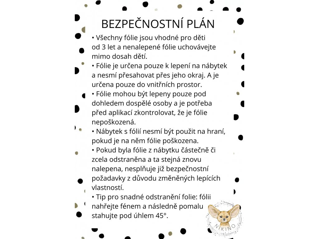 Materiál: Samolepící fólie ( nehořlavá, omyvatelná a vhodná pro věk 3+ )