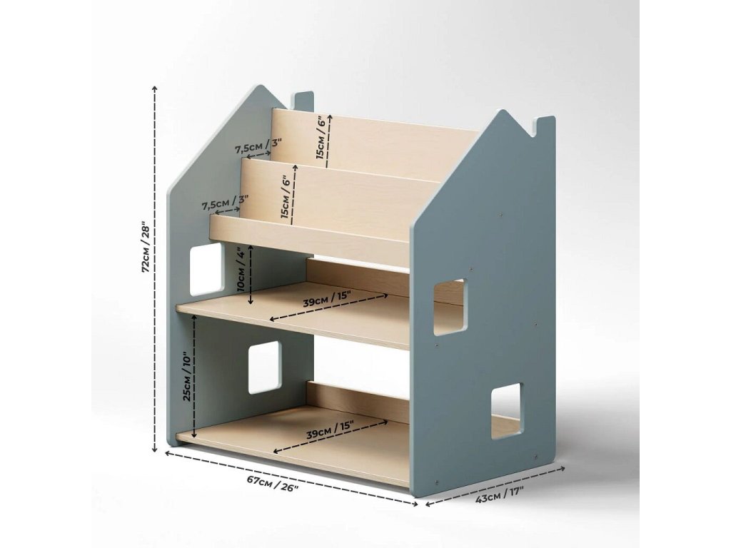Tato police na hračky a knihy je navržena tak, aby podporovala dětskou samostatnost i pořádek. Díky přehlednému uspořádání si děti mohou samy vybírat a ukládat knihy i hračky, přičemž obálky knih jsou krásně viditelné a lákají ke čtení. Police nabízí úložný prostor vhodný pro knihy či hračky. Robustní a bezpečná konstrukce s pečlivě zaoblenými hranami je ošetřena lakem na vodní bázi. Díky jednoduchému, čistému designu krásně zapadne do každého interiéru. Součástí balení je samotná police, přehledný montážní návod i potřebné nářadí. Police je vyrobena z kvalitní lakované březové překližky a její stabilní konstrukce s hladce zaoblenými hranami zajišťuje maximální bezpečnost.