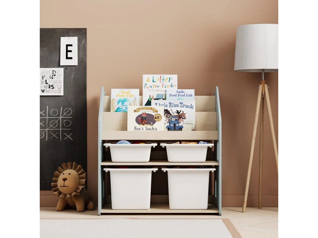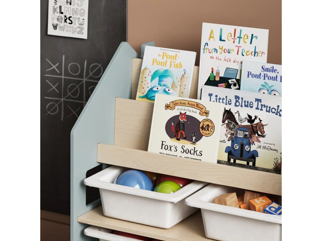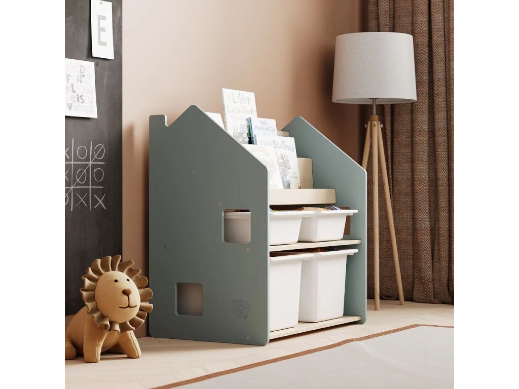 Tato police na hračky a knihy je navržena tak, aby podporovala dětskou samostatnost i pořádek.