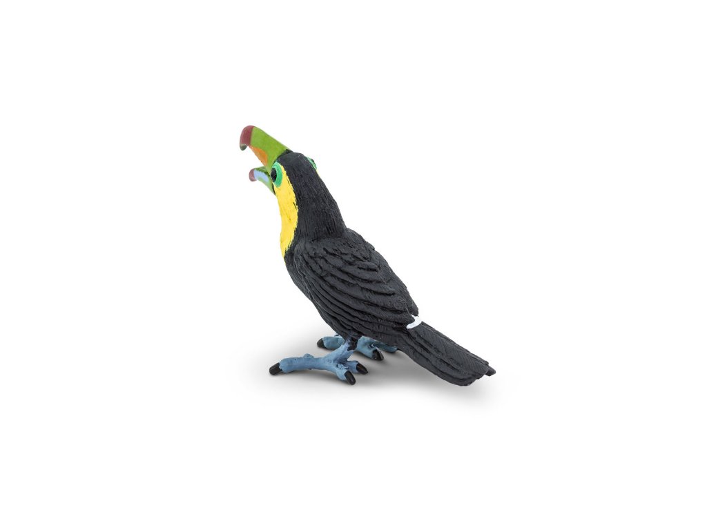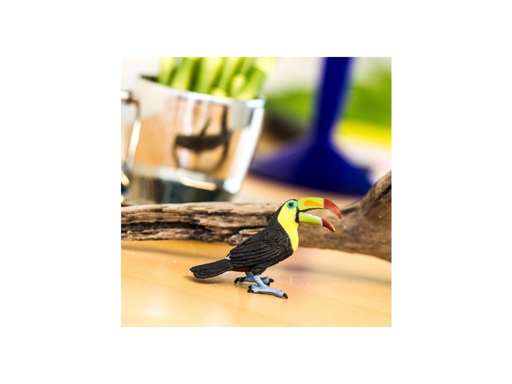 Tento pták je kultovní pro svůj zobák, který je z kosti a je zubatý podél krajů. Ideální na trhání ovoce v tropických oblastech, kde se mu daří.