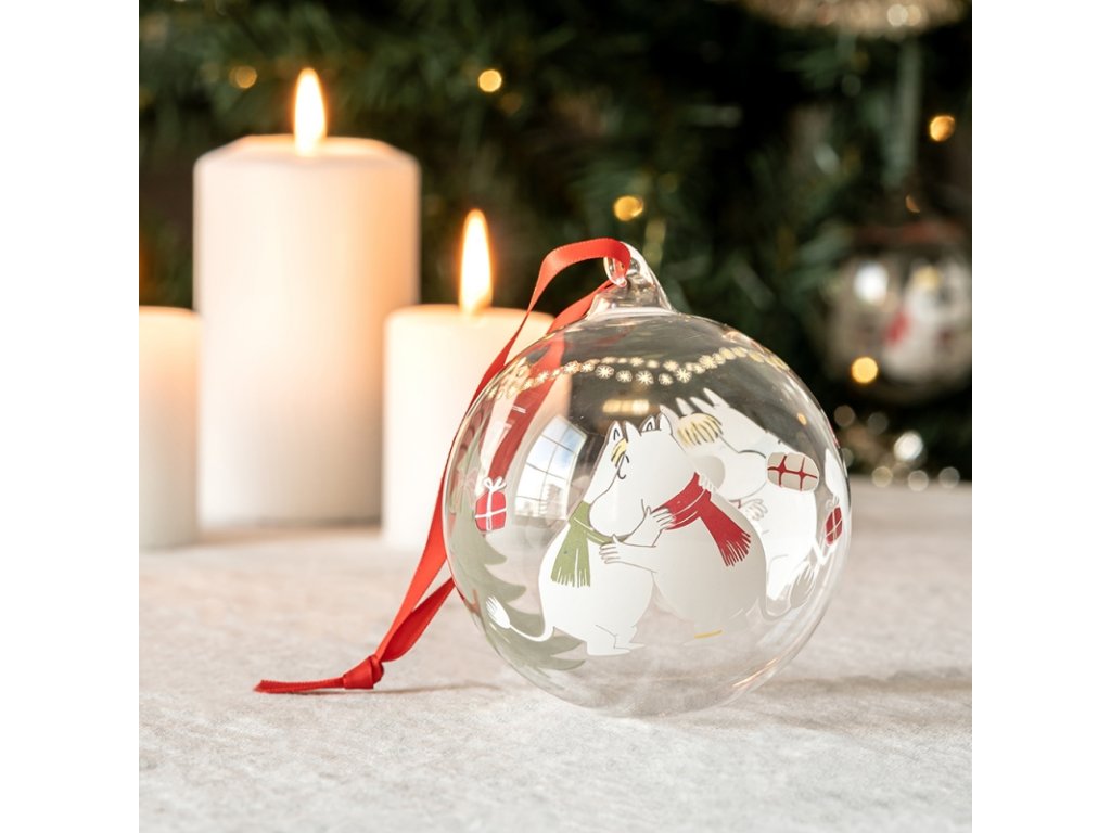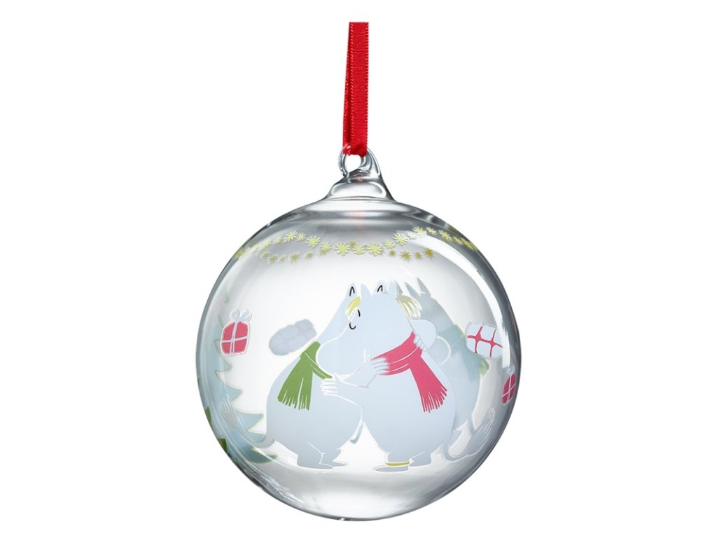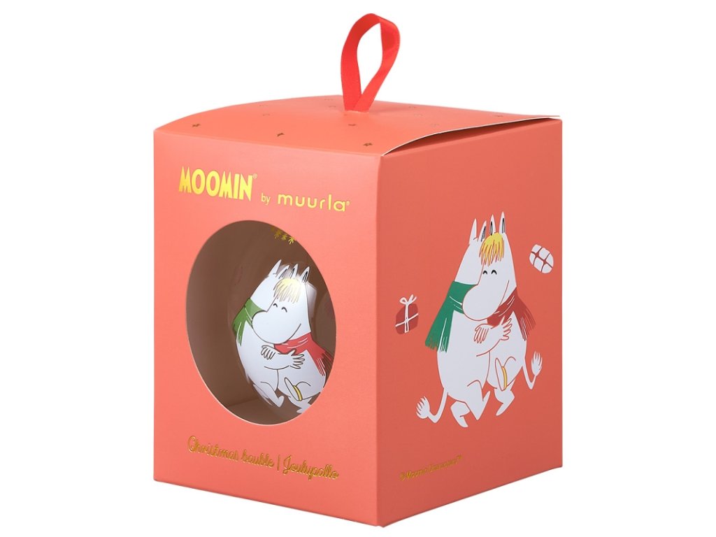 Skleněná vánoční ozdoba s motivem Muminka a slečny Ferky od slavné finské autorky Tove Jansson. Baňka je ideální na zavěšení na vánoční stromeček nebo na větvičku ve váze. Dodáváno v dárkové krabičce.
