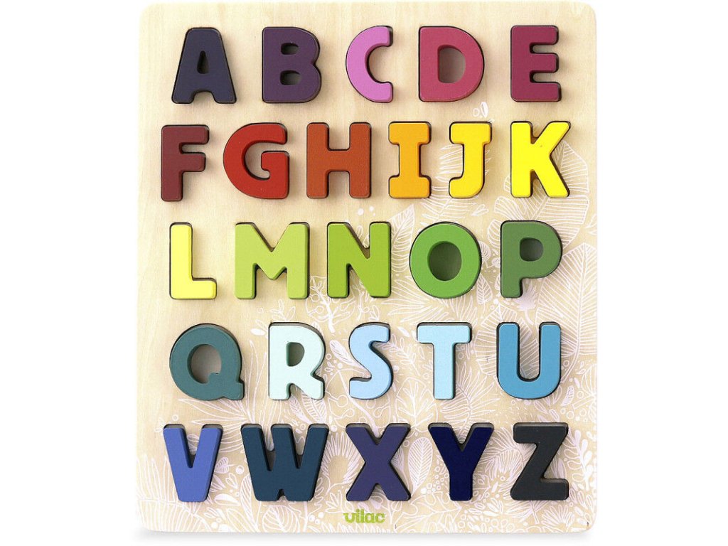 Seznamte se s abecedou pomocí barev duhy. Procvičujte s ní paměť i koordinaci rukou a zraku. Vkládejte písmena do desky, nebo skládejte slova. Tato dřevěná vkládačka je vhodná i jako dekorace v dětském pokoji. Baleno v praktickém látkovém vaku. Hračky Vilac jsou vyráběny bez plýtvání energiemi ekologicky, šetrně k životnímu prostředí.